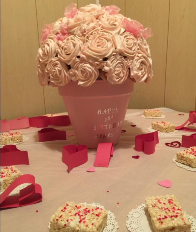 For her party I went with cupcakes in the design of a bouquet of roses.