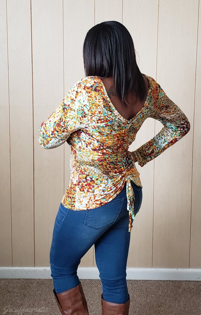 1. This is so pretty! Love the fabric and that you can wear the ruching in the front or back. I have to give this one a try!
