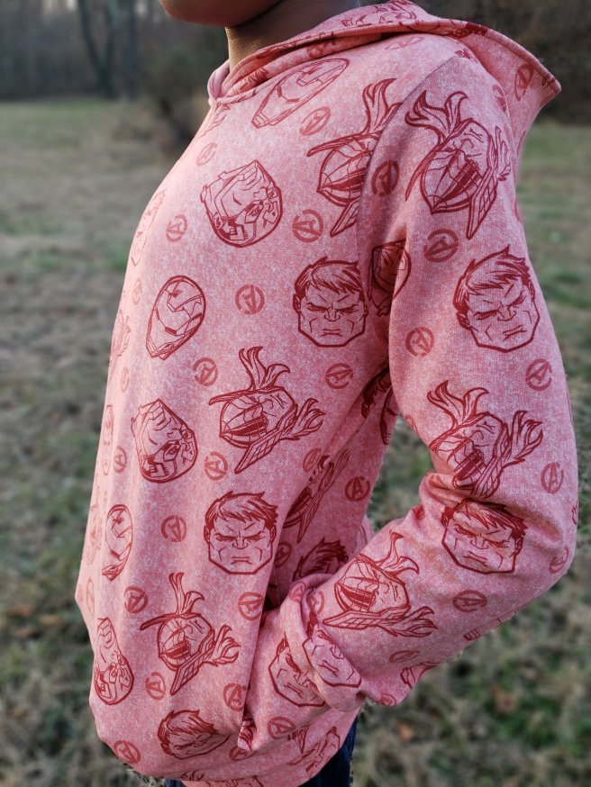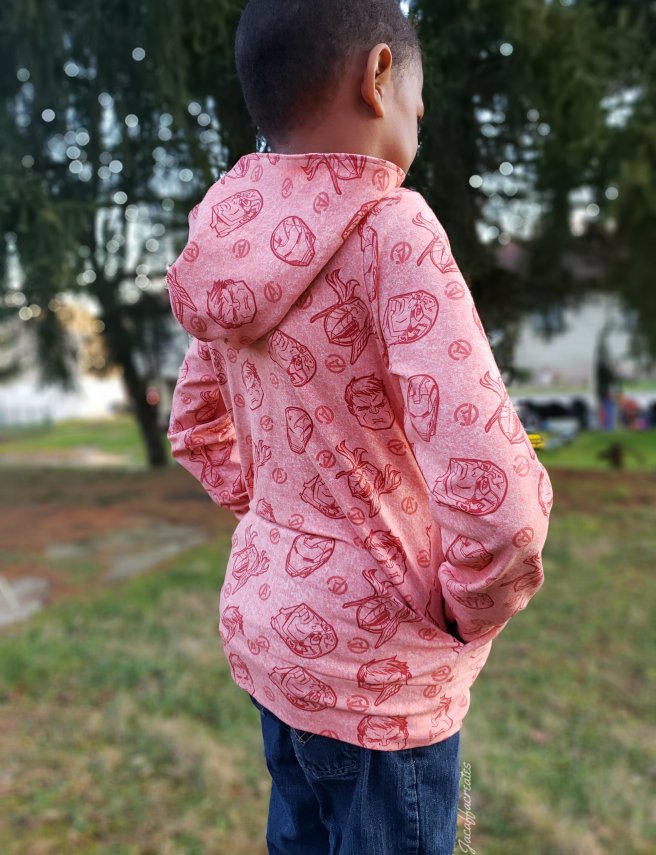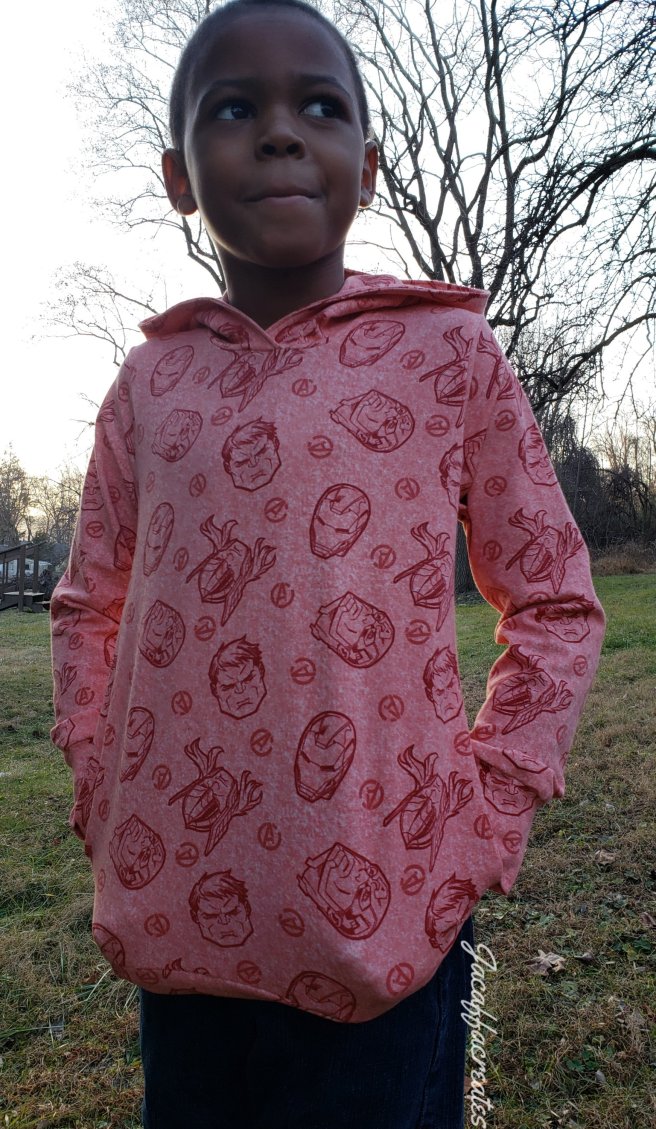 I’ve been sewing like a mad woman lately…I guess it’s that time of year. I did get around to making my 8 year old son a little something. He loves hoodies, so I decided to make him The Be Rad Hoodie from Ellie and Mac for their Wacky Wednesday promo. He picked out his fabric from Joanns online, it was half off $8+ a yard. That’s a little more than I would like to pay for a yard of fabric but I was given a gift card and was going to use that however My awesome husband was already near Joanns and picked up the fabric and paid for it…told me to save my giftcard for another time 🙌🏾!