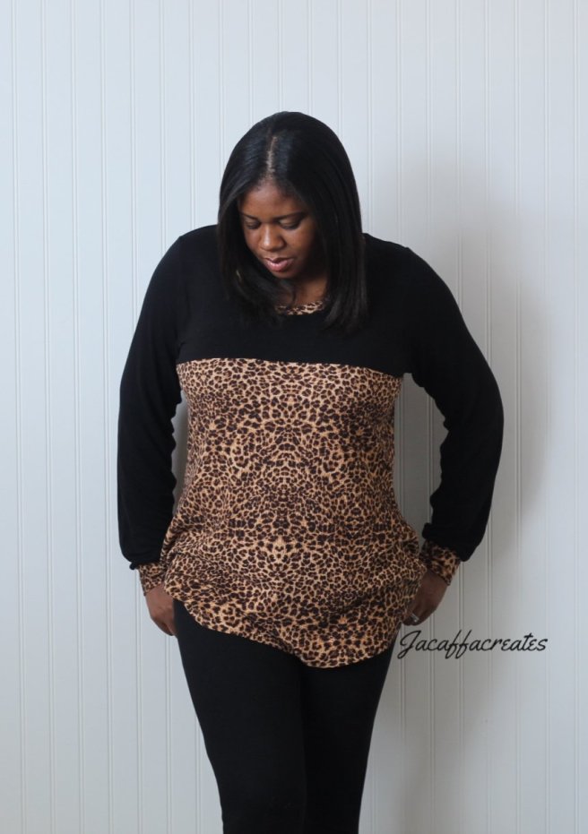 I have been wanting to sew this up for a while now. And when I saw a sweater bundle from Sincerely Riley I knew the black and leopard had to be a Poppy. The black is a sweater knit and the leopard a rib knit.