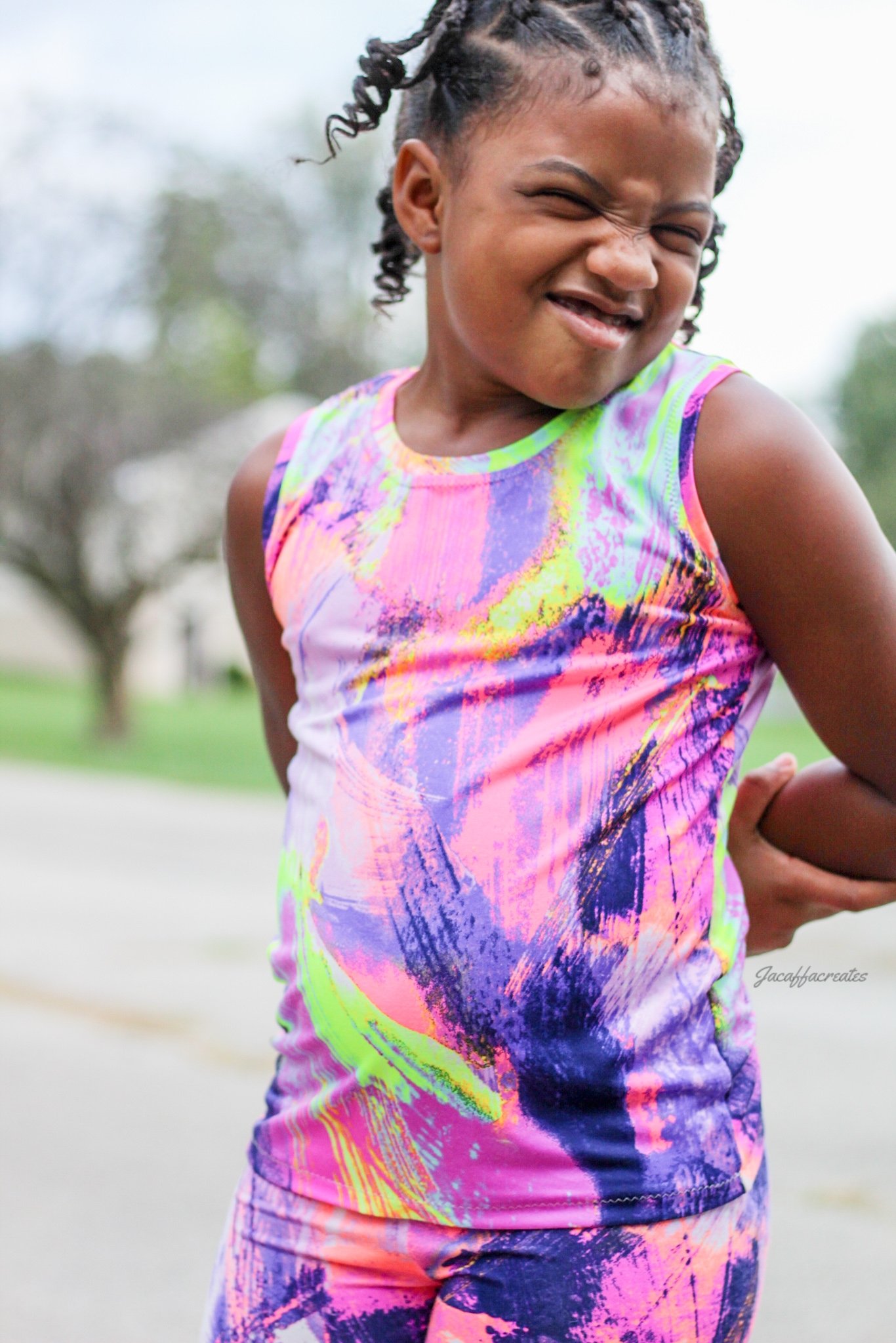I have a quick tutorial to share with you all! A while back I shared on Instagram and in the Facebook Group, my girls in a cold shoulder version of Rodeo with overalls. Just recently, my oldest daughter needed a simple tank for gymnastics, this was a perfect opportunity to document the steps of this hack.