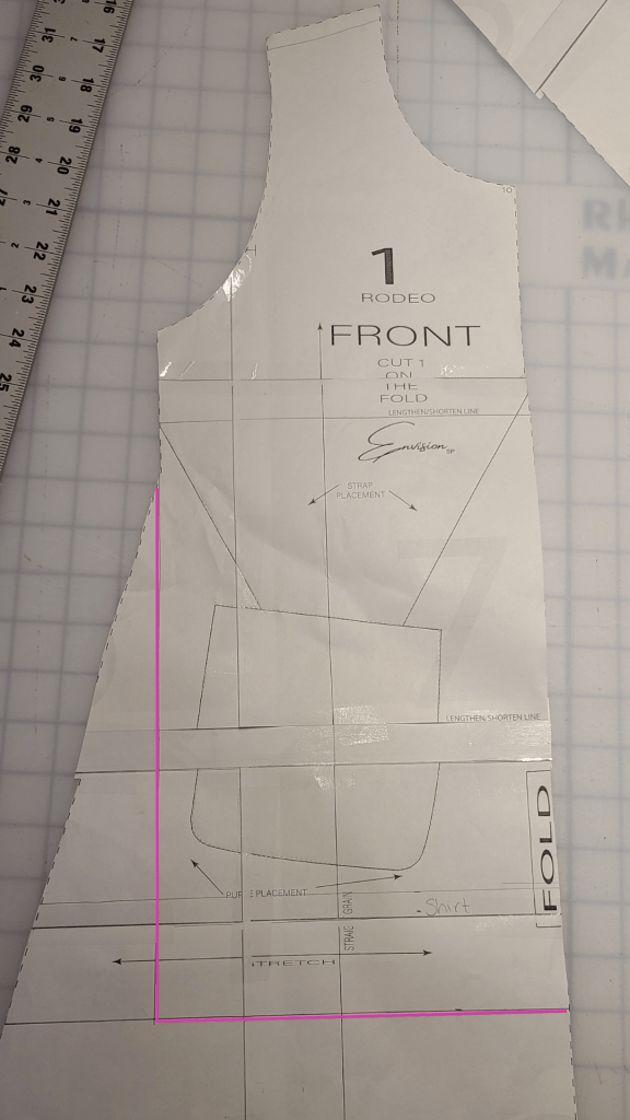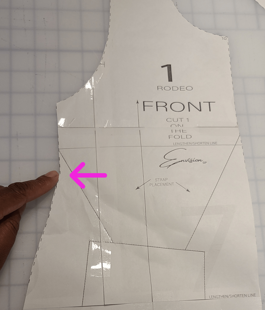 Measure straight down from the point on the pattern where the dress starts to flair out, to the new length.